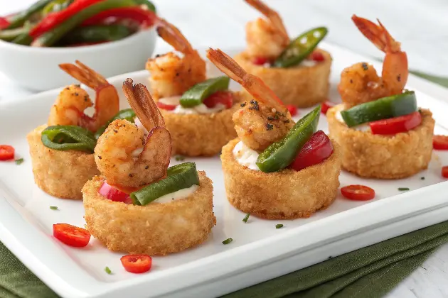 Shrimp and vegetables appetizers are fresh, colorful finger foods that will brighten up your party.